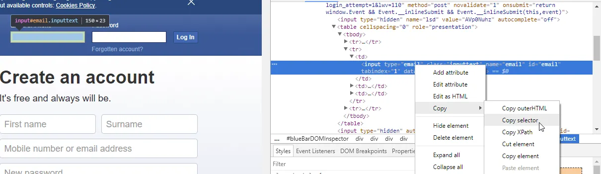- CSS Selector for the Username Field