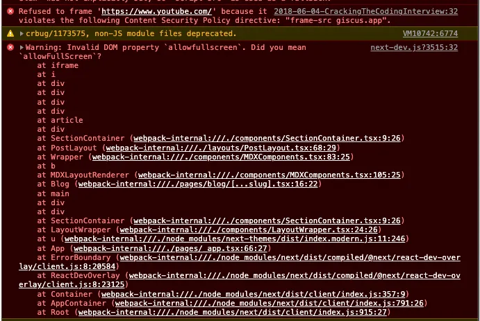 You configure this in the file next.config.js. Here we need to adjust the ContentSecurityPolicy to allow the external site. In this case www.youtube.com.