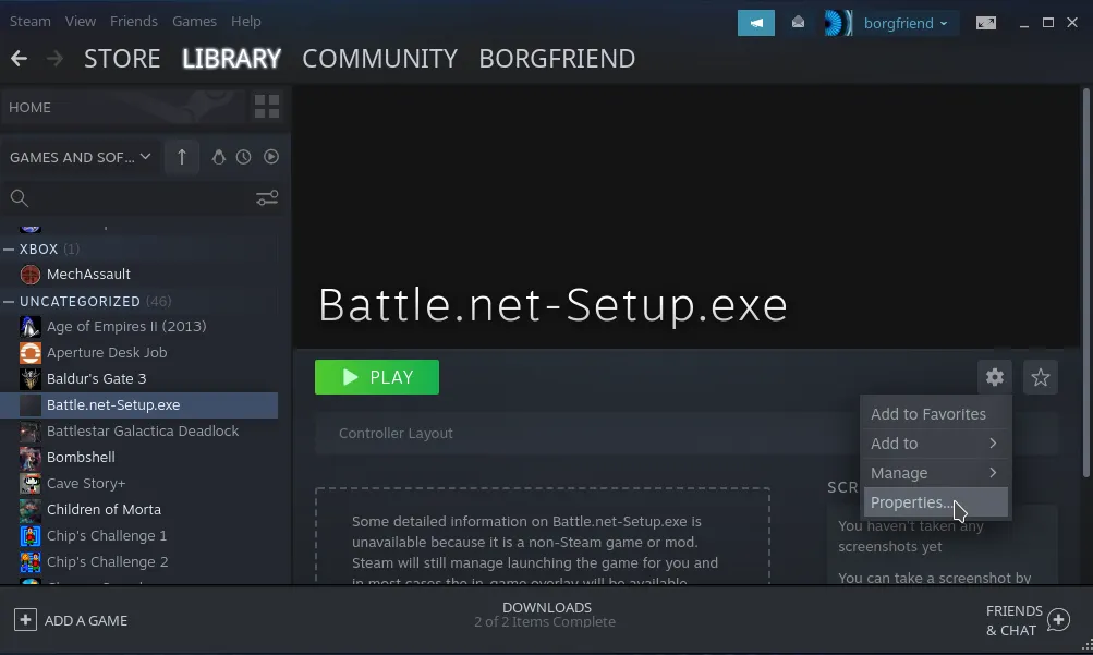 - Go to Games > Add a Non-Steam Game to My Library
